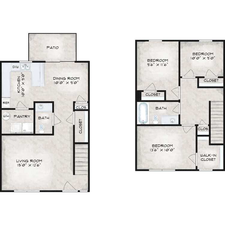 Our spacious two, three, and four-bedroom townhomes for rent offer bright interiors and adaptable layouts that complement your lifestyle. Contemporary kitchens with a full appliance package open to expansive living and dining areas, complete with patios, walk-in closets, and climate control. Elegant carpeting, vinyl, tile flooring, and window coverings create an inviting atmosphere, enhanced by washer and dryer connections in every home and in-home laundry in select layouts. Disability-accessible options, fire sprinkler systems, and cable and satellite-ready homes add welcome convenience.